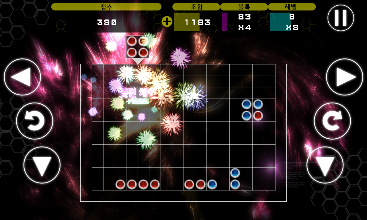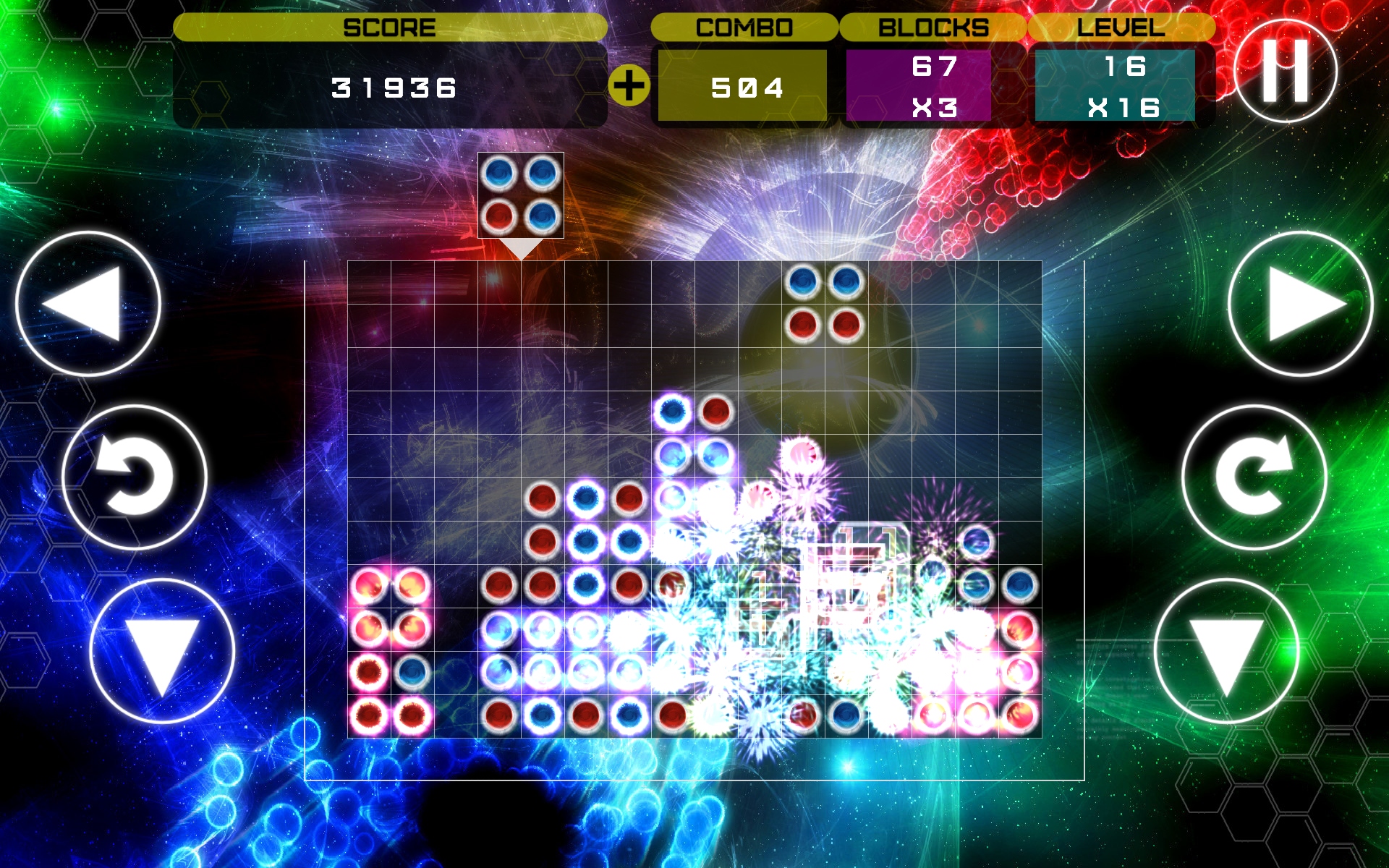 A ‘falling blocks’ style game based on chain reactions and inspired in part by Lumines. Built using the LibGDX framework and coded in Java; art assets created using Inkscape, Gimp & Black Ink; audio created in FL Studio.